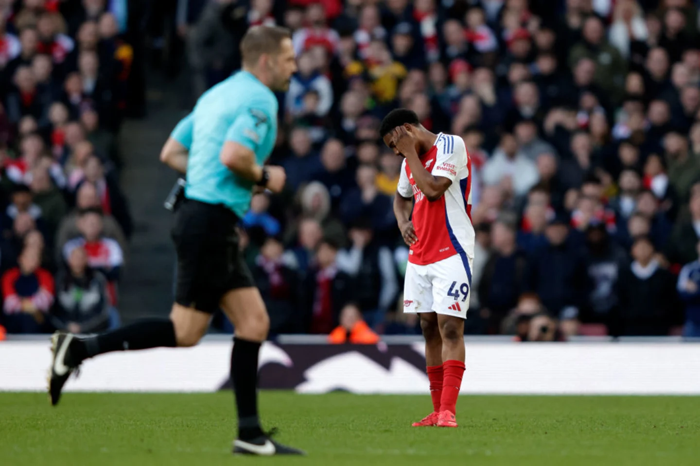 The Gunners frantically sought an equaliser after half-time but their task was made impossible by the dismissal of Myles Lewis-Skelly with 20 minutes to spare. The substitute was initially awarded a yellow card for hauling Mohammed Kudus down as last man on the halfway line, but his punishment was upgraded to a red after VAR intervention.